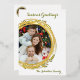 This circular designed photo Season's Greetings foil Christmas card with a garland of gold is a perfect way to share with family and friends at Christmas. The card can be personalised with a new greeting, names and two photos and has plenty of room for you to add your own personal greeting either printed or written your self on each card.