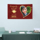 This modern maroon red and gold graduation banner for the class of 2025 graduate features a heart-shaped photo, a "Congrats, Grad!" saying, and a graduate's cap illustration. Please personalise with the graduate's name, upload a custom photo via template, and change a year before ordering.