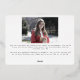 Celebrate your milestone with this chic and modern Class of 2024 Graduation Announcement, a perfect blend of style and simplicity. This A7 card features an aesthetically pleasing design, showcasing two photos on the front and an additional photo on the back, capturing your journey and achievements. The front of the card is elegantly scripted with "Graduate" above the graduate's name, embodying a sophisticated and personal touch. Designed to be both modern and timeless, this announcement card is an exquisite way to share your accomplishment with friends and family.