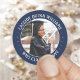 Photo Class Year Navy Blue White Modern Graduation Classic Round Sticker
