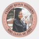 Photo Class Year Pink Rose Gold & Black Graduation Classic Round Sticker