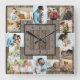 Photo Collage 16 Picture Brown Wood Numbered Square Wall Clock