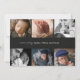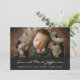 Photo collage black newborn baby boy unisex birth Announcement has a hero photo on the front with templates for the baby name and birth stats. The back comes with a 6 photo collage and a "welcomed by" template you can personalise and make your own