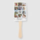 Our custom photo collage black and white modern hand fan program holds 11 of your favourite photographs and has a fun logo "HAPPY LIFE" in the centre with the word love in script at the bottom. The back side has all of your wedding program schedule and details.