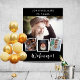 Create your own unique photo collage. Use four, 4 of your favourite photo. Personalise and add a name and age. A black background, white text.
