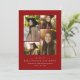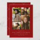 Celebrate your graduate with this classic and simple four-photo graduation announcement. The collage of photos has room for two horizontal and two vertical images - perfect for showing off senior photos. The type at the bottom includes plenty of room for name, school and year in white against a scarlet red background, which matches the backer of the card. The red colour can be adjusted to any school colour by clicking "Customise further."