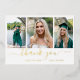 Simple flat graduation thank you card featuring a minimalist style with multiple photos. The front has a three photo collage with "thank you" in an elegant handwritten font along with the graduate's name in real gold foil. The backside has your personalised message. This modern graduation thank you card is perfect for a girl high school graduate and the message template is a great time saver.