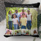 Personalise this happy throw pillow with your favourite family photos. The template is set up ready for you to add up to 5 photos and your family name (or custom text). The main photo will be used as the background and the remaining 4 photos will be laid out in a zigzag photo strip along the bottom. The design has a stylish black background with white lettering, in neat and clear handwritten style, script typography. Please browse our store for alternative photo gifts or similar items.