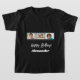For a black/dark t-shirt. Personalise and add a name and 3 photos inside the film roll frame. White text.