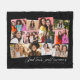 A fun collage of 12 photos on a black background is a great way to remember the special times. With a hand-written "good times, great memories" this photo collage blanket also includes room for custom text. Celebrate senior year, a vacation, a sports season or anything with this great gift idea. Perfect for a graduation gift, an anniversary gift, a friendship gift, birthdays, holidays and more!