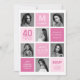 Contemporary 40th birthday party invitations featuring a modern photo collage, cute pink squares, and a stylish text template for you to personalise with your own celebration information.