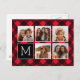 Photo Collage - Monogram Red Black Buffalo Plaid Postcard