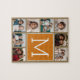 Photo Collage Monogram - Rustic Kraft and Orange Jigsaw Puzzle