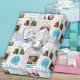 A fun photo collage 30th birthday wrapping paper with a customised name to wrap all you birthday gifts in. Bold graphics of a cake, present, party hat and cupcake in pink, blue, yellow, orange, and green.