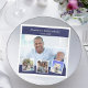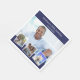 Create your own unique photo collage. Use four, 4 of your favourite photos. Personalise and add a name, age, date. A classic navy blue background. White text.