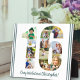 16th Birthday Plaque - personalised with a photo collage of your favourite photos and custom text. The photo template is set up ready for you to add your photos, which will be displayed in the shape of a number 16. The wording, which currently reads "Congratulations [name]!" can also be customised. Please browse my store for more 16th birthday gifts. The borders and typography are in a modern shade of teal (blue green grey colour) which you are welcome to edit (click "customise further").