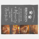 Elegant pet tribute keepsake blanket featuring a stylish grey background that can be changed to any colour, a 4 photo collage of the pet your remembering, a sympathy quote that reads "when someone you love becomes a memory, those memories become treasure", paw prints, the name of your dog or cat, and their birth/death date. This modern animal memorial blanket is easy to customise, and is the perfect gift for you, your family, or friends to honour those special pets who are no longer with us.