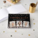 Elegant custom birthday guest book design featuring rose gold and silver confetti over a black background, modern script typography with the words "100th Birthday Guest Book" (in rose gold foil), your name and date (in silver), and three of your favourite photos framed in rose gold foil.
