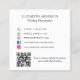 Back: Templates for your name, title, phone number, mail and website address, QR-code to your website. Facebook and Instagram icons.