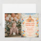 This whimsical circus birthday design features a storybook-style big top tent, pastel balloons, festive bunting, and soft confetti details. Inspired by vintage fairgrounds and playful carnival magic, the artwork feels joyful, warm, and timeless. Perfect for a child’s birthday celebration, this design creates a charming circus atmosphere without feeling loud or overstimulating—sweet, celebratory, and keepsake-worthy.