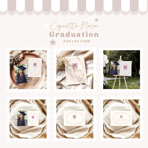 Photo Coquette Pink Bow Nursing School Graduate Announcement