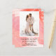 Small 4.5" x 5.6" affordable wedding save the date cards feature your photo and your details in chic lettering on a painted coral - pink - white background. Be sure to double-check your order before adding it to your cart as what you see on the screen is what will be printed. The Live Design Service can help you with your design layout if needed. MORE designs in our store.