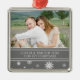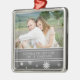 Couples first christmas decoration customisable with your own photo in elegant dark charcoal grey and white festive snowflakes pattern. Makes a wonderful keepsake or gift for your spouse.