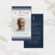 Keep the memory of a loved one close with this custom personalized prayer card featuring one cherished photo, the sentiment IN LOVING MEMORY, name and dates on the front and an editable heartfelt remembrance message accented with a simple cross on the back in your choice of colors (shown in navy blue). With its simple yet elegant classic design and modern script typography, it makes a meaningful keepsake to share at a funeral, memorial service or Celebration of Life and offers comfort and a lasting tribute for family and friends. Its small and portable size of 3.5x2" (wallet-sized) makes it convenient for loved ones to carry it with them as a reminder of your loved one’s life and spirit. Personalization makes each card unique.