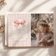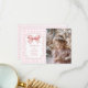 Photo Cute Pink Bow Coquette 1st Birthday Thank You Card