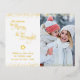 “May your days be merry & bright.” A playful, real gold foil calligraphy script quote, star, and confetti dots against a clean, white background on the left, and the photo of your choice on the right, help you usher in Christmas and New Year. Your custom note, typed or handwritten, is on the back. Feel the warmth and joy of the holiday season whenever you send this trendy and festive personalised holiday real gold foil photo greeting postcard. Matching and coordinating envelopes, stickers, giftwrap, pillows, housewares, jewellery, and other products are also available in my “Christmas Days Be Merry & Bright” store collection. Send this to someone special!