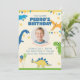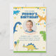 Invite your guests to a fun-filled dinosaur-themed birthday party with this customisable invitation! This cheerful and vibrant design features a friendly photo upload section, surrounded by playful cartoon dinosaurs and festive elements like balloons and bunting. Perfect for celebrating your little one's special day, the card includes space to personalise with your child's name, age, and party details. Join the roar-some fun at [Party Venue], located at [Party Address], on [Party Date] at [Party Time]. Make your child's birthday celebration unforgettable with this adorable and personalised invitation!