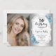 Elegant floral feminine 50th birthday invitation with your photo. Glam design with faux silver. Features light dusty blue roses, script font and confetti. Perfect for a stylish adult bday celebration party. Personalise with your own details. Can be customised for any age! Printed Zazzle invitations or instant download digital printable template.