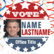 Election campaign sticker in red, white and blue colours. Add a photo.