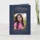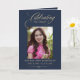 Photo Elegant Blue Gold Funeral Keepsake Program Card