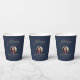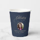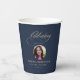 Photo Elegant Blue Gold Script Funeral Memorial Paper Cups