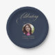 Photo Elegant Blue Gold Script Funeral Memorial Paper Plate
