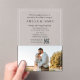Celebrate the beginning of your forever with this stunning acrylic wedding invitation, designed to bring a modern and luxurious touch to your special day. At the top, the text combines elegant calligraphy with a classic serif font, creating a perfect balance of sophistication and charm. At the bottom, add your favourite photo to personalise this invitation and make it uniquely yours. Crafted on sleek acrylic, this invitation exudes contemporary elegance, making it ideal for modern and minimalist weddings. Its timeless design and premium finish set the tone for a celebration filled with love, joy, and unforgettable memories.