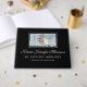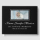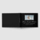 Memorial service guest book in black with white text. Add your loved one's name in a gorgeous script beneath a photo of them in a simple plain white frame comprised of clean lines. Honour your loved one who has passed at their memorial service with this in loving memory guest book in black and white and a photo printed in colour, personalised with their photo, name, and years living.