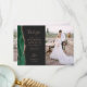 Send your family and friends a special wedding thank you with these custom photo cards. On the left, the words "thank you" appear in elegant rose-coloured handwriting script typography on a slate black background over a brief, editable message of thanks to your wedding guests in copperplate font, with your names below. An emerald green watercolor agate border trimmed with faux rose gold glitter decorates the left edge. The reverse side provides space for a second, horizontal photo.