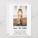 An engagement wedding photo save the date card. Add your information on the front and the back.