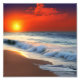 Beautiful white foamy waves on the sandy beach at sunset AI art.