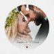 Honour your first holiday season as a married couple with our Wedding Photo – First Christmas as Mr. and Mrs. Ornament. This elegant keepsake captures the magic of your wedding day, featuring your favourite photo, names, and wedding date and a small, red heart beautifully displayed on the front. The reverse side showcases a graceful typography script and space for your personalised text—as your Mr. and Mrs. “surename” and current year. The white gradient and snowflake border overlay can easily be hidden inside the design tool as well as the small, red heart. You can also change and modify the colour of the heart to reflect your colour theme.