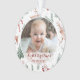 Cute Baby's First Christmas holiday photo ornament features a rustic pattern in classic, traditional Christmas colours of red, green. Edit in a minute, upload your favourite photo and enter your data. Perfect for your new little one!