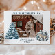 Celebrate your first holiday season as a couple with this cosy and heartwarming card, featuring a customisable photo, family name, and year. Set against a rustic winter backdrop with snow-dusted pines and lanterns, this design captures the warmth and magic of your first Christmas together. Perfect as a keepsake or holiday greeting for newlyweds, engaged couples, or new families. Every detail is fully personalizable to reflect your story.