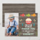 Cute fishing themed thank you card featuring three fish, fishing bobber, cotton tail and more. The background is a wood image giving the invitation a rustic look. This is a sweet way to thank guests for coming to your little boy's fishing themed birthday party.