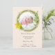 Simply beautiful the perfect Birth Announcement to send to all your friends and family announcing the baptism of your child. Featuring a photo on the front on pale pink background, shiny light green wreath and floral design along with all the baptism information.