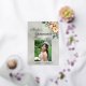 This divine invitation embellished with a floral bouquet and placeholder for the young lady's photo on a pastel sage green background. Details for the event are on the back. "Quinceanera" and the girl's name are in foil. Designed to coordinate with the "Cream Floral on Pastels" Quinceanera Collection. To change details, click «Personalize». To move the text or change the text size, font, or color click «Click to customize further»