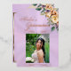 This divine invitation embellished with a floral bouquet and placeholder for the young lady's photo on a pastel lavender background. Details for the event are on the back. "Quinceanera" and the girl's name are in foil. Designed to coordinate with the "Cream Floral on Pastels" Quinceanera Collection. To change details, click «Personalize». To move the text or change the text size, font, or color click «Click to customize further»