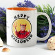 Celebrate the spirit of spooky season with our Happy Halloween two-tone coffee mug as a gift to your family or loved ones. This design features custom photo with black circle frame and unique typography saying 'Happy Halloween' and personalised message at the centre (you could delete if don't need it).