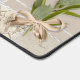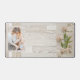 Photo Frame & Ribbon Wrapped Flowers on White Wood Desk Mat